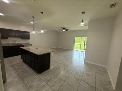 Move-in ready! 3 bedroom, 2 bathroom duplex with attached 1-car garage located in desirable Deep Creek. This spacious home features an open floor plan, tile floors throughout, and plenty of natural light. The kitchen offers ample cabinet space and a breakfast bar, opening to the living and dining areas. Primary suite includes a private bathroom and walk-in closet. Located on a quiet cul-da-sac surrounded by serene woods. Enjoy the screened lanai overlooking the backyard—perfect for relaxing or entertaining. Laundry hookups inside for convenience. Perfect location for commuters with fast & easy access to I-75, shopping, restaurants, schools, golf, and just a short drive to downtown Punta Gorda and Charlotte Harbor.