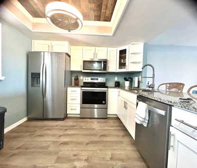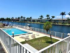 Available for a midterm rental! 3 -5 months! Come see your new home that comes with Beautiful Gulf Access Canal views of the Rubicon Canal, FREE Internet, 2 beds, 2 baths, and a carport. It comes "turnkey", and fully furnished. This home has been fully remodeled to perfection. You will love the large granite counter tops that will allow you to cook with ease. The new kitchen comes equipped with SS appliances and plenty of cabinet space to store your cooking essentials. The LVP flooring is beautiful and easy to clean. Store all of your treasures in the large storage area on the screen patio. Your car will feel cool in the summer heat because you have your own covered parking space. No more trips to the laundromat because this home comes with an indoor washer and dryer. You will love living in this community that has amenities such as a heated community pool, and a community dock (first come first serve and we do not guarantee that there will be a spot available).