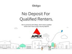 Apex Property Management LLC is proud to offer NO DEPOSIT move-ins to qualified renters through Obligo! We understand that moving costs can add up, so we want to extend financial flexibility to our residents.
