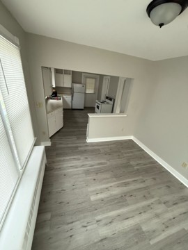 Newly renovated 2 BR, 1.5 BA two-story apartment. The first floor has a fully-equipped kitchen with a microwave, range, small refrigerator, and ample cabinet space. Also on the first floor is a living room, dining room, and half bath. The second floor has two bedrooms and a full bathroom. The unit has a small porch off the back of the building. The flooring is a mix of carpet and laminate. Large windows provide great natural light. Excellent, move-in-ready condition. No pets allowed.