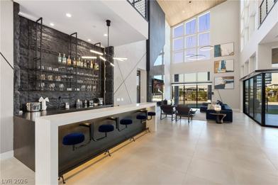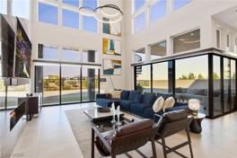Experience luxury living at its finest in this one-of-a-kind, fully furnished modern masterpiece in the prestigious guard-gated community of Summerlin. Spanning 4,888 square feet, this 5-bed, 5.5-bath home has been meticulously upgraded over two years with no detail overlooked. From the moment you enter, soaring ceilings and oversized sliders flood the space with natural light and frame breathtaking city views. The gourmet kitchen is a showstopper with a custom stone; lighted dining table seamlessly integrated into the island. Entertain in style with a sleek, custom-designed bar and spacious game room. Each bedroom is a private retreat with its own en-suite bathroom, uniquely designed with high-end stonework and dramatic lighting. Step out onto the balcony to soak in the panoramic skyline or relax on the expansive patio that blends indoor and outdoor living. This residence offers a rare blend of bold design and sophisticated comfort—perfect for the most discerning resident.
