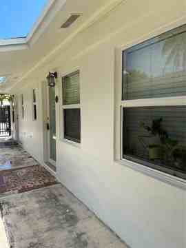 walk in shower Impact windows and doors. One assigned parking space, stainless steel appliances. Open concept kitchen/living area. Laundry on site. Close to shopping/dining. Outside of buildings freshly painted. (non aggressive breed) size limit, dog permitted with owner approval. Building is Opposite a park for added convenience to exercise your pet. One year minimum unfurnished lease.