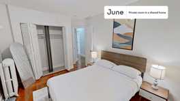 This Queen room in Roxbury is available on a 12 month lease or a flexible short term (31 to 364 days) lease. You pick your custom start and end date. Monthly rent rate is determined by furnishing preference, move-in date and move-out date. Speak to a June representative for recommendations on the best stay duration for the lowest rate.