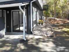 Bike or bus to UNC from this fully renovated two bedroom apartment in a quadplex. This apartment offers a private in town setting, just a short walk to shops and restaurants. This home features hardwood style plank flooring and high ceilings throughout. There are efficient ductless mini-split ac and heating units in each room of the home. The spacious living room exits through a glass slider to a walled patio area. There is a ceiling fan in the living room. This room is open to the kitchen with a space for a table define a dining area. The updated kitchen features granite counter tops. Stainless appliances include a refrigerator, range, dishwasher, and built-in microwave. A closet at the end of the kitchen contains the utility area, pantry shelving, as well as a separate space for the included stacked washer-dryer. Both bedrooms are convenient to the shared bathroom. One bedroom has two closets. The other bedroom is an interior room with a double door closet. The bathroom includes a tub-shower. Parking is available in front of the unit, steps from your door. Google fiber has been run to this property. Pet with fee and prior approval.