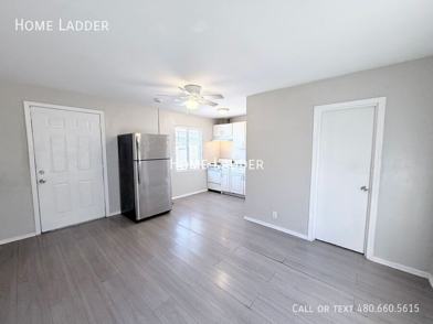 This unit has been refreshed with modern finishes, the apartment includes a fully functioning kitchen with a refrigerator, stove, and microwave! Parking included. Enjoy all wood like vinyl flooring, open concept floorplan, and a ceiling fan.