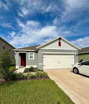 Welcome to this 3-bedroom, 2-bath single-family home in the desirable Cascades of Davenport. Built in 2023, this property offers a modern layout with an open living room, dining area, and kitchen featuring stainless steel appliances, solid countertops, and a center island. The home includes ceramic tile flooring throughout the main living areas and kitchen, with carpeted bedrooms for added comfort. The spacious primary bedroom offers a walk-in closet and a private bathroom with dual vanities. Additional highlights include a smart home system and a fenced backyard providing added privacy and outdoor usability. Located minutes from US-27, I-4, schools, shopping centers, restaurants, medical facilities, and Central Florida attractions. Community amenities include a playground, community pool and outdoor walking spaces.