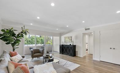 Modern, clean and updated Sherman Oaks 1 level condo with almost 1100 square feet! Spacious open floor plan with brand new interior paint and laminate wood type floors throughout. Plantation shutters open to private balcony. Very light and bright. Eat in kitchen has floor to ceiling window. Large bedroom and full bath with dual sinks. Open concept living and dining room. Close to shopping, restaurants and freeways.