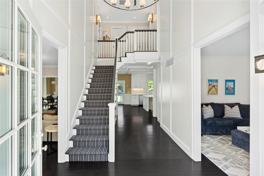 This stunning Southampton Village residence exudes timeless elegance and charm, starting with a striking double-height foyer that ushers you into a space of effortless sophistication. The open-concept layout features a gourmet kitchen with custom cabinetry and top-of-the-line appliances, a formal dining area, and a spacious living room centered around a cozy fireplace. A first-floor junior master suite offers privacy and comfort, while a tucked-away study with its own fireplace provides a quiet retreat. Upstairs, the luxurious master suite boasts a private balcony, complemented by three additional guest bedrooms. The finished basement expands the living space with a second family room, guest suite, and laundry room. Outdoors, you'll find a beautifully appointed poolhouse with a full bath, a pergola, and a serene atmosphere perfect for relaxation. The gunite pool is complemented by a fire pit and waterfall feature, while a fully-equipped outdoor kitchen adds to the appeal, all surrounded by lush, manicured landscaping. This exceptional home is just a short stroll to Southampton Village's dining, shopping, and movie theater, and only 2.4 miles from the pristine Coopers Beach.