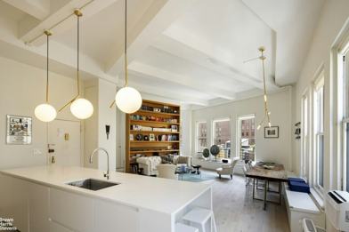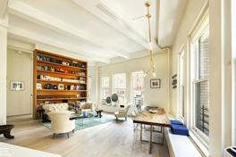 Pet FriendlyFIRST TIME ON THE MARKET!! A rare opportunity to live in an EXCEPTIONAL TRIBECA LOFT!! Soaring 12 foot beamed ceilings throughout with dramatic floor-to-ceiling windows that flood every room with natural sunlight and showcase iconic open southern views of downtown Manhattan. From the moment you enter, a canvas unfolds, creating a harmonious tapestry of calm amid the energy and excitement of living perfectly positioned in the very heart of Tribeca, between Franklin and Leonard Streets. An artfully designed open-floor plan successfully integrates the living room, dining room and kitchen, all anchored by a 9.5 foot custom-designed, floor-to-ceiling oak bookcase. The ceiling in the living room cleverly conceals an electrically operated drop-down 93x39 Elite Screen for those stay-at-home immersive movie nights. The impeccably renovated open kitchen features a long center island with Corian countertops perfect for the master chef and for entertaining. Top-of-the-line appliances, include a Viking gas stove, Miele dishwasher and dryer, Gaggenau fridge and freezer, Wolf oven and range, U Line wine fridge, warming oven,pantry and an abundance of storage. An in-unit Miele washer-dryer of course! The adjacent dining area is as functional as it is beautiful, easily accommodating a 10-person table beneath striking designer lighting. It is ideal for intimate dinners or larger gatherings surrounded by picture postcard views of some of Tribeca's great architectural buildings. The primary bedroom is awash with its open southern exposure, accommodates a king-size bed and custom closets. The second bedroom enjoys the same radiant natural light and is perfect as a child's room, den, office or for your guest. The bathroom is nothing short of spa-worthy. Artfully designed to include double sinks and an oversized walk-in shower with dual large shower heads. This architect who created this beautiful apartment is Dieter Vander Velpen and was featured in the Belgian Financial Times as well as in the interior design book The Ultimate Guide to Apartments by Beta Plus. 100 Hudson Street is one of Tribeca's iconic boutique Loft buildings. With just a handful of residences, it offers quiet privacy, exceptional architectural character and a roof terrace with skyline views that stretch across the city. The very soul of TRIBECA is just outside your door cobblestone streets, Michelin-star dining, land-marked architecture, world-renown art galleries, and Hudson River park just a stone's throw away. Whether it's morning espresso at Bluestone Lane, brunch at Bubby's, dinner at Locanda Verde or a delightful stroll through Duane park, this is downtown living at its very best!! Offered furnished or unfurnished By Appointment. Welcome Home!!