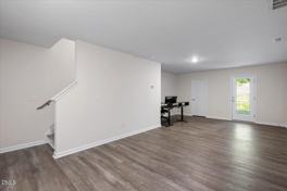 This newer construction townhome offers 3 bedrooms, 2.5 bathrooms, and a 1-car garage, blending style, functionality, and a prime location. The primary suite features a private ensuite bathroom, while the open-concept main floor boasts a spacious living room with a private balcony-perfect for relaxing or entertaining. Enjoy cooking in the modern kitchen with granite countertops and stainless appliances. The home includes luxury vinyl plank (LVP) flooring throughout. A versatile flex/recreation room on the ground level connects to the garage and opens to a patio- the space is ideal for a home office, gym, or media room. Fridge, W/D included. Pets negotiable. Minutes from Duke Hospital, Duke University, and downtown Durham, this home puts you in the heart of it all. Home is also listed for sale.