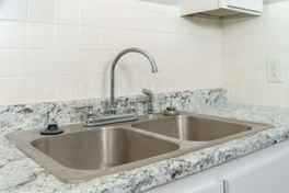 This studio apartment features click flooring, fresh paint, and shades throughout as well as granite countertops.