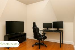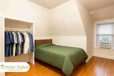 This private bedroom is located in a 4-bedroom, 2-bathroom house. All common spaces in the house—including the living room, dining area, kitchen, and bathrooms—are furnished and professionally cleaned (bi-weekly) included with rent. The unit also features a large private deck and in building laundry. Exclusively for students, this unit fosters a community-focused living environment ideal for those seeking affordable housing and like-minded roommates. Included with rent: Bi-weekly cleanings of all common spaces, all utilities, Wifi, Furnished common spaces. Contact us to learn more about bedroom furnishing and pre-ordering kitchen and bedding essentials. Interested in rooming with friends? Contact us to learn which other bedrooms in this unit are still available.