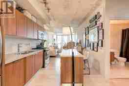 The King East. 1 Bedroom + Den W Murphy Bed (Can Use As A 2nd Bedroom). Spectacular 129 Sqft Balcony W Gas Bbq Hookup. Quality Finishes Throughout. Floor To Ceiling Windows, Stone Countertop And Gas Range In Kitchen, Hardwood Floors. Exposed Concrete Ceilings & Feature Walls. Grocery & Lcbo 2 Blocks Away. 504 King Streetcar Steps From Building. Walk To Food & Entertainment In The Distillery District/ St Lawrence Market. * Parking Can Potentially Be Arranged.**** EXTRAS **** Stainless Steel (Fridge, Stove, Dishwasher, Microwave) Stacked White Washer & Dryer. Heat Pump Is Leased, Contract To Be Assumed By Tenant