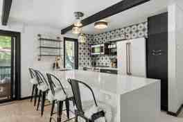 This beautifully renovated condo is a chic mountain retreat! Designed to sleep 8, this 2-bedroom, 2-bathroom sanctuary has gourmet appliances, an artisan dining table, gas fireplace, European white oak floors, boutique tiled showers, in-unit laundry and ski-storage. Lounge in the super soft sofa or BBQ and enjoy the fresh mountain air on the private patio. Bedding is 2 kings and 4 twins. Woodbridge amenities include pool, hot tub, 1-car common parking. No pets for short-term renters. Short walk to Assay Hill or use the free shuttle. Short-term Rental permit # 058202 Brochure