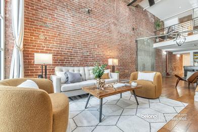 You’ll love the soaring ceilings, exposed brick walls, and incredible location just steps from the Embarcadero in this spacious 1-bedroom, 1-bath unit with a bonus room and 1,080 square feet of living space.