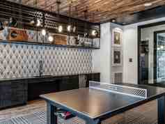 5th-floor sky lounge with kitchen and billiards table and outdoor deck with city views