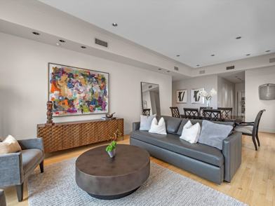 Beautiful two-story SE corner unit facing Rice Village/Med center/NRG stadium. Available for immediate occupancy. Located on a high floor(10th level), this lovely unit was redesigned during construction making it a unique floor plan from other unit in the building. Spacious high ceiling living room & dining rm w/art lighting & wall with nearly floor to ceiling windows. Kitchen boasts custom pull-out shelving w/ stainless appliances including gas burning stove top, and granite counter tops. All main living areas enjoy gorgeous natural light with southern exposure. Covered balcony with 2 storage closets. 24 hr concierge service. Truly lock and leave building!