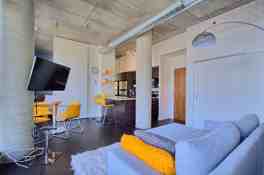 Superbe condo style loft situé au coeur du du vieux Montréal ! Belle fenestration avec beaucoup de lumière, donnant sur la cours intérieure et immense balcon terrasse. Impeccablement décoré, mubles sur mesures dans la 2 ème chambre (lit mural et espace de travail). Chambre principale avec téléviseur, Garde Robe WALK IN a couper le souffle!