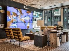5th-floor sky lounge with kitchen and billiards table and outdoor deck with city views