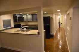 Two-bedroom, 1 bath basement unit in a house. Kitchen, eating area, living room and hall have concrete floors and carpet in the bedrooms. Washer/dryer in unit. Street parking. No pets, no smoking. Close to community center parks.