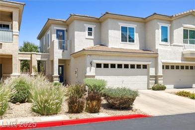 STUNNING FURNISHED RETREAT! Just bring your clothes & toothbrush! This fully furnished, move-in-ready home in a gated Henderson community sits @ the base of Black Mountain and offers city & mountain views. Enjoy resort-style living w/community pool right across the street and a lush, garden-like backyard featuring sunny patios and peaceful greenery. Enjoy the open-concept living area w/ fireplace, large picture window, and fresh, modern décor—a warm, inviting space that feels like home, not a rental. The dining area includes a clever fold-out table that seats six, & an equipped kitchen to entertain. Upstairs, a spacious loft separates two bedrooms for added privacy. The primary suite includes a double-sink ensuite w/ soaking tub & separate shower, the second bedroom connected to bath. Both bedrooms feature walk-in closets and balconies with views of the Strip and mountains. This Black Mountain gem offers the perfect blend of luxury and convenience. Base rent: $1950 + $20 trash=$1970.