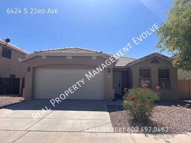 This 3-bed, 2-bath Phoenix home has been freshly painted and is move-in ready! Spacious layout with tile and wood plank flooring throughout. Kitchen features ample cabinet-space, pantry, breakfast bar, and all major appliances. Primary bedroom has ensuite bathroom with dual sinks, separate tub and shower, and big walk-in closet with built-in shelving. Attached garage. Enclosed laundry room with washer and dryer included. Backyard has covered patio to beat the heat. Schedule a tour!