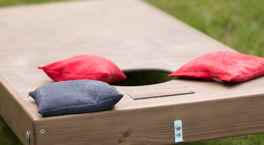 Outdoor Gaming Area with Ping Pong Tables & Cornhole