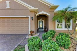 One or more photo(s) has been virtually staged. Welcome home to this gorgeous 4/2 open concept home. Home has a painted driveway and front entry with curbed landscaping. The home has 3 bedrooms towards the front of the home and the primary suite in the back of the home with tile flooring throughout and tall baseboards. Kitchen has 42 upper cabinets, tile backsplash, double oven range, large center island with pendant lighting that looks over the great room. The great room has a beautiful tiled electric fireplace from floor to ceiling. The master bath has been set up with wheelchair access to vanity, shower and toilet with security bars in place. The large, screened lanai can be enjoyed year-round and has plenty of space for grilling and entertaining. The community is located north of the river, near the new Market Walk shopping center which has new restaurants and coffee shop coming soon. The Parrish area is continuing to grow with plans for a new trauma hospital, medical center, SCF campus, community park and lagoon waterpark. The HOA includes internet and basic cable, clubhouse, resort style pool, fitness center, playground and sports court. Short commute to Ellenton Outlet Mall, UTC Mall, St. Pete and Brandon.