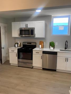 Brand new laminate and carpet flooring throughout, Spacious bedrooms with ample closet space, a fully renovated bathroom and Central Air. A modern kitchen with luxurious countertops and all-new stainless-steel appliances, dishwasher, refrigerator, microwave, garbage disposal plus a washer and a dryer for your convenience!