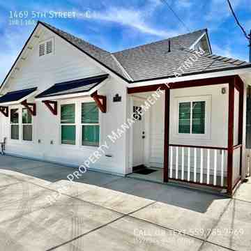 Located near old Town Clovis, enjoy the charm of the Farmer’s Market, antique stores, shopping, street fairs, numerous restaurants, and modest nightlife. Kitchen features granite countertops, and custom cabinets. Stainless appliances; refrigerator, electric stove/oven, dishwasher and disposal. Vinyl plank flooring throughout. Shared wall with Unit B. Energy efficient, air conditioning, north and south facing windows. Bedroom and living room both feature a ceiling fan. Full bathroom featuring walk-in shower and single vanity. Interior laundry closet with stackable washer & dryer provided. Charming details throughout, built-in dresser drawers, and additional closet. EV charging adapter available. Single driveway and alley parking per city code. Solar panel usage included. Water, sewage, trash included. Tenant responsible for PG&E. Fully paved front and backyard. Low to no maintenance backyard, featuring extended covered patio and a ceiling fan. Small pets ok. No smoking. Credit score above 650 REQUIRED.