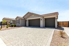 Beautiful move-in ready home! This thoughtfully designed residence offers modern comfort, versatile living spaces and a prime location- perfect! Open-concept living with gourmet kitchen featuring quartz countertops, luxurious owner's suite with sizeable walk-ins in every room and with two versatile flex rooms—perfect for a home office, gym, or teen space. The backyard is fully finished with pavers and custom planters, ideal for relaxing or entertaining. Conveniently located near I-10 and Loop 303, with easy access to Estrella Mountain trails, top-rated schools, shopping, dining, and entertainment.