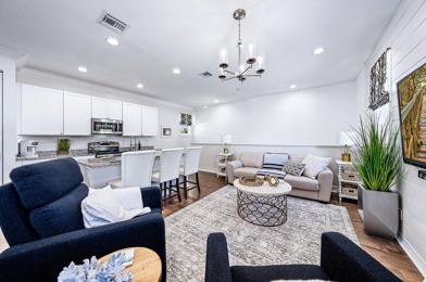 Nestled within the charming Botanica community, this expansive guest house apartment is a true gem - a rarity to find. A meticulously crafted haven, it showcases a completely custom layout, adorned with exquisite hardwood flooring throughout. The suite boasts top-tier GE stainless steel appliances, granite countertops, and is impeccably furnished with a tasteful, contemporary interior design. The kitchen showcases bespoke cabinetry, an expansive island seating three, fostering an open-concept space perfect for gatherings. The bathroom evokes thoughts of a tranquil island escape, while the generously-sized bedroom is graced by a King-size bed and an enviable walk-in closet. Conveniently accessed via a separate entry at the rear of the main residence, you have the freedom to come and go at your leisure. While this rental doesn't grant access to the private on-site pool, rest assured that the sprawling community pool is just a brief stroll away. The property's prime location ensures proximity to shopping centers, the esteemed Gardens Mall, sun-kissed beaches, and all the wonders that the tropical paradise of Jupiter, Florida has to offer. This is offered as an annual rental at $2,600/month or seasonally at $6,000/month.