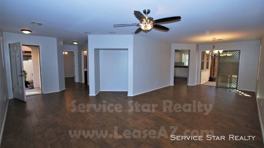 Beautiful 3 bedroom, 3 bathroom home with bonus flex room in the Lyons Gate Community. The open entry area leads you into the spacious living room The kitchen features white kitchen cabinets, gas appliances, granite countertops, and an oversized pantry. Downstairs there is also a bonus/flex space room that can be used as an office/den or possibly a fourth bedroom (there is not a closet) 3/4 bath downstairs. Upstairs are two guest bedrooms, a guest bath, and a large master bedroom upstairs. The master bathroom features dual vanities and a large walk-in closet. Laundry room upstairs. The home has wood-like tile throughout downstairs and new carpet in the bedrooms upstairs. Ceiling fans throughout. There is a two-car garage back entrance and covered back patio.