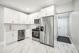Beautifully renovated 2-bed, 2-bath rental in the heart of Norris Square. This bright, modern home features central air, new windows, and a new roof for year-round comfort. The open living space offers recessed lighting, white floor tiles, and a stylish center staircase. The sleek kitchen includes white cabinetry, quartz countertops, stainless steel appliances, and room for dining. A full bathroom and private fenced patio complete the first floor. Perfect for relaxing or entertaining. Upstairs, enjoy two spacious bedrooms and a spa-inspired bathroom with black and white designer tile. A large basement provides extra storage plus a new washer and dryer. Conveniently located near public transit, parks, groceries, and just minutes from Fishtown's top dining and shops. Don't miss this opportunity to rent a stylish, move-in ready home in one of Philly's most vibrant neighborhoods!