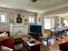 Inside, the open-concept layout creates a seamless flow for effortless living and easy hosting. A beautiful decorative mantle, original to the home, is the center piece to a cozy living room. A separate dining area with a built in bench connects you to the the newly updated kitchen with quartz counters, beautiful cabinetry, state of the art stainless steel appliances and a breakfast bar. Its perfect for those who love to cook or entertain!