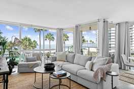 Welcome to Coronado beachfront living at its finest. Experience truly spectacular views of the Pacific Ocean, breathtaking vistas of San Diego skyline and Glorietta Bay. This premier private corner unit features exceptionally light and bright open floor plan with large outdoor patio. This lovely unit has one king size bed in the primary bedroom with large walk in closet and private bathroom. The guest bedroom has two twin size beds. The second bathroom has a washer and dryer. This unit is newly renovated and comes completly stocked - even down to the beach chairs! This residence includes housekepping services bi-monthly. The El Encanto Tower has been recently renovated and has the convenience of a 24/7 front desk staff. At The Coronado Shores guests have access to 8 tennis courts, 4 pools and work out facility. Unit comes with 1 inside parking space.