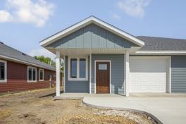 New construction 2 bedroom townhomes with short term leases available. Each side has 2 bedroom, 1 bath and is a cozy 975 sq. feet. Each has a private single stall attached garage. Concrete shared wall is great for sound deafening. Nice sized tree/bush lined backyard, with adjacent community lot (not buildable). Separately metered utilities, and tenant pays all. Lawn & snow care included in rent. Quiet development set away from the hustle & bustle on the outskirts of town, but just a short distance from schools, parks, Gustavus and downtown St. Peter activities. Short term leases, as short as 3 months. Animals permitted with additional fees/monthly pet rent. Application & background check.