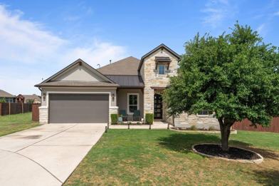 Welcome Home to Forrest Views, nestled within the highly sought-after Morningstar community in Georgetown. Enjoy the convenience of scenic parks, tranquil trails, and a refreshing community pool—just steps from your front door. Step inside to a grand entryway that opens into a spacious, light-filled layout. This thoughtfully designed home features soaring ceilings, elegant oversized doors, and stylish fixtures throughout. The expansive kitchen is a true centerpiece, boasting premium stainless steel appliances, quartz countertops, a stunning island ideal for entertaining, and custom details like shiplap accent walls, board and batten finishes, and a striking wood-inlaid entry ceiling. Modern conveniences abound, including a Nest thermostat and doorbell, a huge walk-in pantry, automatic full-yard sprinkler system, and abundant built-in cabinetry for effortless organization. Enjoy added comfort and privacy with automatic blinds throughout. The primary suite offers a serene retreat with dual walk-in closets and a luxurious en-suite bath. Two additional bedrooms share a charming Jack-and-Jill bathroom—perfect for families or guests. Step outside to a spacious patio overlooking serene woodland views—ideal for morning coffee or evening gatherings.