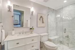 Available starting July. Top of the line finishes in this gorgeous unfurnished 2 bed and 1 bath condo with beautiful natural lighting and views looking onto mature trees and landscaping. This corner unit has been completely remodeled. Kitchen offers quartz counters and subway tile backsplash and all Samsung stainless steel appliances and more. The entire condo has water resistant vinyl flooring throughout for easy maintenance. Custom sliding Barn doors in the main bedroom with crown molding in every room, stainless steel vent in Kitchen and of course the carrara Marble used in the bathroom featuring a spacious walk in shower with glass doors and seat, Kohler toilette and Pottery barn fixtures. Enjoy the Florida lifestyle on your screened in patio with extra storage and travertine flooring. Entire home has a water filtration system built in for shower and kitchen faucet. The Greens is located within Fountain lakes offering a 9 hole golf course, basket ball courts, tennis, nature paths, access to community pool as well as club pool, fitness center, bocce ball, shuffle board, play ground, club house and more. Across from coconut point minutes to I75, 41 Tamiami trail as well as the airport makes this the perfect location. sorry no pets per HOA