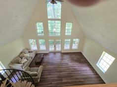 Updated 2BR/2BA country living home available in Cleveland. This distinctive property is situated on several acres, providing a private and scenic environment. The residence features a spacious "A" Frame living room with floor-to-ceiling windows and expansive front and rear decks. The main level includes a bedroom with an adjacent bathroom, while the upper level comprises an additional bedroom with a full bathroom. A large open basement offers ample space for storage, hobbies, crafts, or recreational activities. Available immediately.