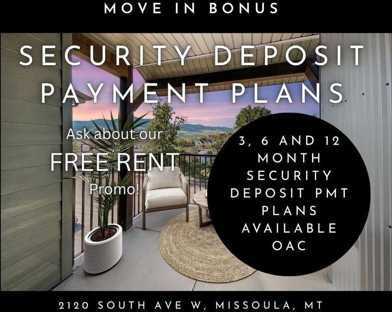 Rent Smart Property Management is proud to be the first PM in Missoula offering the renter community a reduced barrier of entry in securing your next home. We have partnered up with a 3rd party vendor who offers 3, 6, 9 or 12 month payment plans on your security deposit. Secure your new home with a fraction of the move in fees! Upon application approval and acceptance of our lease terms, you will be sent a link to qualify for your payment terms. * Payments are made online directly to the vendor who will hold your deposit through the term of your lease and refund your balance due after you vacate in accordance with the MRLTA.