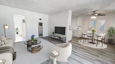 Step into this bright and airy 1-bedroom, 1-bathroom apartment, designed for stylish and comfortable living. Recently updated with fresh new paint and brand-new flooring throughout, this home offers a crisp, modern look that feels both clean and inviting. The huge open-concept layout creates a spacious atmosphere, while sleek white countertops add a touch of elegance to the kitchen. You'll love the included fridge and stove, making meal prep a breeze, and the air conditioning ensures year-round comfort.