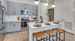 Discover a modern apartment community that offers a seamless blend of comfort, convenience, and style. These thoughtfully designed residences feature open-concept layouts with high-end finishes, including quartz countertops, stainless steel appliances, and luxury vinyl plank flooring. Expansive windows bring in natural light, while private balconies provide a personal outdoor retreat. Residents enjoy access to a range of upscale amenities such as a resort-style pool with swim lanes, cabanas, and grills; a rooftop lounge with a bar and outdoor terrace; and a fully equipped fitness center with smart technology. Additional conveniences include coworking spaces with reservable conference rooms, a pet park with a spa, and bike storage. Smart-home features like keyless entry and smart thermostats enhance everyday living.