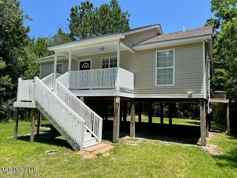 Don't worry about flooding with this classic raised home in Bay St. Louis, located just off Highway 90. Quick access to Interstate 10 for those who might need to travel to work in the New Orleans area or to Stennis Space Center. A short drive into Bay St. Louis and other cities along the coast. Home features an open living/dining/kitchen concept. Primary bedroom has a double vanity, tub/shower combo and a large walk-in closet. The other two bedrooms in this split floor plan share a full bath located off the hall. New luxury vinyl flooring just installed. Kitchen has a bar with seating, refrigerator, electric stove and microwave. The nice-sized laundry room is located off the kitchen and has a door opening to a small covered porch on the back of the home. Gravel under the home allows for parking and lots of storage. Good sized yard with a small drainage ditch in the back. Don't miss out. Shouldn't last long. Included in the rent is a $100 credit per month for water/sewer/garbage.