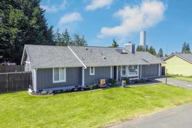 This beautifully maintained single-level home offers comfort, charm, and convenience, less than a mile from SR 512 and under 20 minutes to JBLM, with easy access to parks, shopping, and dining. The home features vaulted ceilings, skylights, and hardwood floors throughout the main living spaces. The living room is anchored by a large bay window and a striking floor-to-ceiling fireplace, creating an inviting space to relax. The kitchen offers ample storage, stainless appliances, and a convenient breakfast bar, with an adjacent dining room. The primary suite features a full bath, while a second guest bathroom and additional bedrooms complete the ideal floor plan. Step outside to enjoy a fenced backyard with a covered patio, perfect for year-round enjoyment, and includes an shed for additional storage or hobbies. Take the virtual tour at https my matterport com show ?m=DPyA933Y4r6 or schedule a showing and secure this move-in-ready home!
