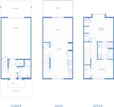 These homes have an open main floor with a smartly designed eat-in kitchen and overheight windows. Two bedrooms up top and a really big bathroom too. On the lower level, there's a full bathroom and room for two cars – one in and one out.