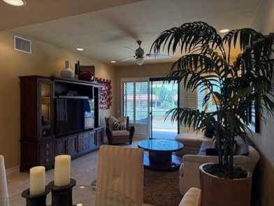 Discover the allure of Sunrise Country Club with this beautifully upgraded 2-bedroom, 2-bath Granada floor plan. Revel in the unobstructed lake and mountain views from your back patio, or enjoy a meal in the private courtyard's charming outdoor dining area. The home includes a one-car garage with access to the front courtyard. The kitchen features top-of-the-line appliances, while the remodeled bathrooms boast newer cabinets and plumbing fixtures. All furniture is thoughtfully arranged to maximize floor space. Relax on the back patio to the soothing sounds of the fountain. Sunrise Country Club is a guard-gated community offering 746 residential condos, an 18-hole par 64 golf course, 9 championship tennis courts, 10 pickleball courts, 21 swimming pools/spas, and a clubhouse with a dining room, lounge, grille, golf/tennis pro shops, and a fitness/activity center. Additionally, there are 2 new bocce ball courts. Located in the heart of Rancho Mirage, the community is close to major shopping, entertainment, and health facilities, with Palm Springs International Airport just 20 minutes away. Available November- December 2025 and April 2026