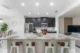 Beautiful Fully Furnished 3 Bedroom / 2.5 Bathroom Townhome in a Desirable Gated Community! This move-in ready for August two-story unit is being rent completely furnished, featuring tasteful and modern furniture throughout. The open-concept kitchen offers quartz countertops, extended cabinets, and plenty of storage space. The first floor includes custom blinds and lighter tile flooring. All bedrooms are upstairs with carpet and spacious closets. The master bedroom includes an ensuite bathroom with a stand-up shower. Washer and dryer are included. Enjoy the open lanai with no rear neighbors, perfect for relaxing and enjoying Florida’s weather. The community offers excellent amenities, including a pool, playground, and clubhouse. Prime location with quick access to Hwy 27, I-4, US 192, US 17, 429, Champions Gate, and Solterra. Just 20 minutes from Disney parks and close to top-rated schools, shopping, dining, golfing, and entertainment. Renter's insurance required. No pets allowed. It could be rented full furnished with an extra month amount.