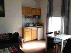 HUGE furnished studio with a private bathroom and kitchenette. Wall to wall carpeting. Two BIG windows - very bright and sunny. Double bed included!