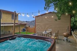 OUTDOOR LIVING: Perhaps the best feature is the outside deck with a covered patio, hot tub, charcoal grill, fenced yard, string lights, and pet friendly.